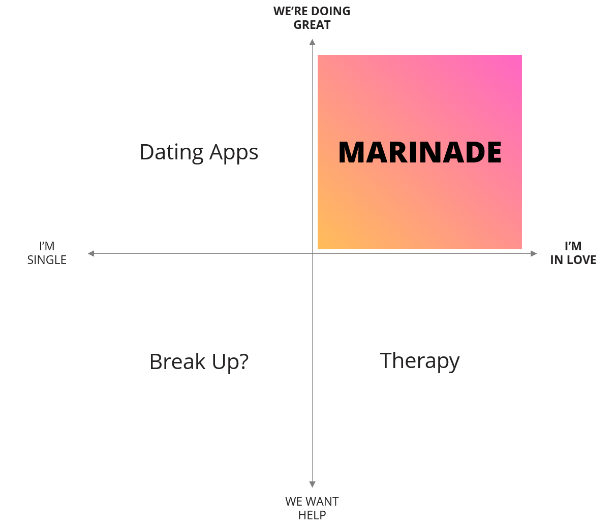 At Marinade, we became obsessed with the research and wisdom behind healthy, happy long-term relationships. Particularly for couples who have demanding careers.Although we love talking and writing about this, it's helpful to read from a broad range of sources.We’ve found thousands of amazing resources. This is just a snapshot. It’s meant to be a very short, non-comprehensive ‘syllabus’ on the research into couples wellness.It’s not meant to be sequential. Pop around and dig into whatever seems interesting. It’s also not designed to be corrective. We focus on the upper right quadrant: